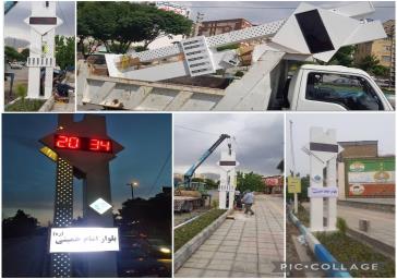 ساعت دیجیتالی در ورودی شهر رودهن از سمت بومهن توسط واحد زیبا سازی شهرداری رودهن نصب شد .