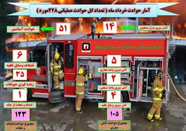 مدیرعامل سازمان آتش نشانی و خدمات ایمنی شهرداری قرچک گفت: تعداد ۲۲۸ مورد حادثه در خردادماه رخ داده که توسط سازمان آتش نشانی و خدمات ایمنی شهرداری قرچک عملیاتی شده است .