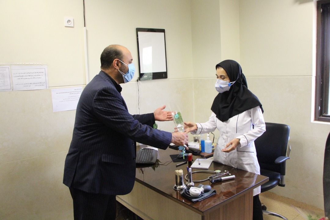 فرماندار پیشوا با اهدای گل از کادر پزشکی درمانگاه تامین‌ اجتماعی قدردانی کرد
