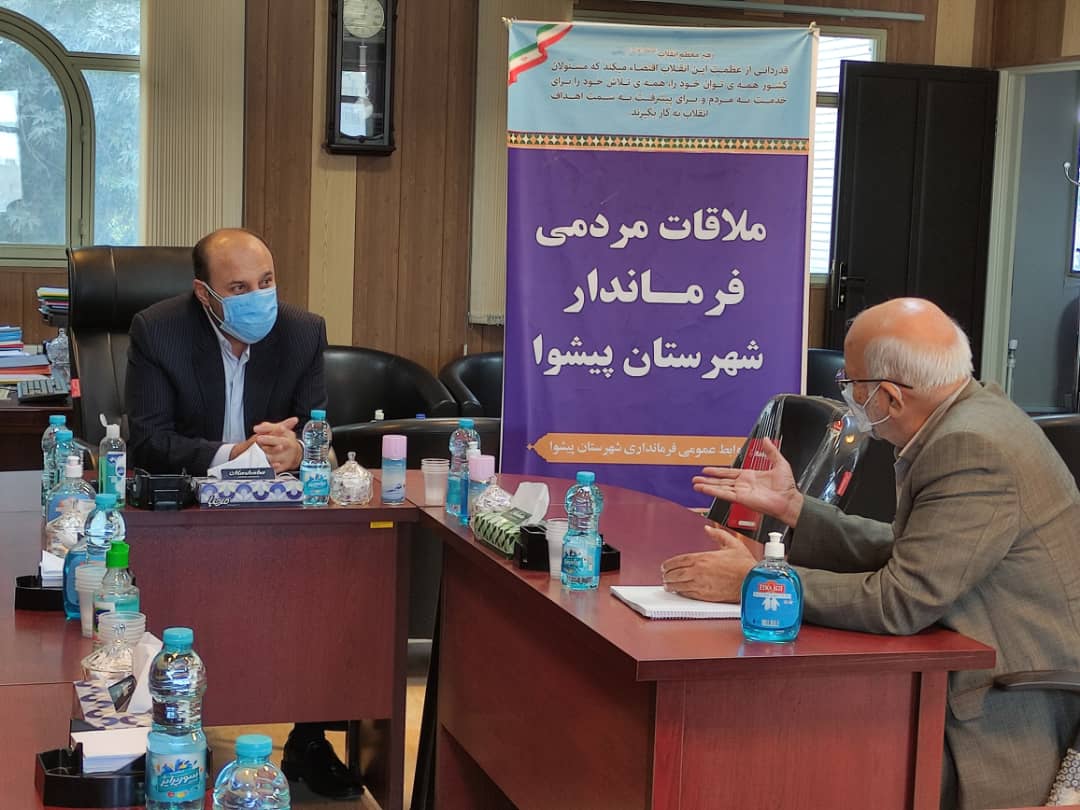 ملاقات عمومی حسین عباسی فرماندار پیشوا با شماری از شهروندان به منظور رسیدگی مستقیم به مشکلات آنها، از ساعت ۸ صبح روز سهشنبه۲۳ شهریورماه با حضور صادق بندعلیان مسئول بازرسی در محل فرمانداری برگزار گردید.