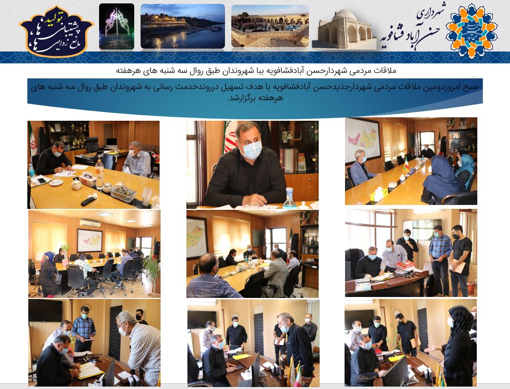 صبح امروزدومین ملاقات مردمی شهردارجدیدحسن آبادفشافویه با هدف تسهیل درروندخدمت رسانی به شهروندان طبق روال سه شنبه های هرهفته برگزارشد.