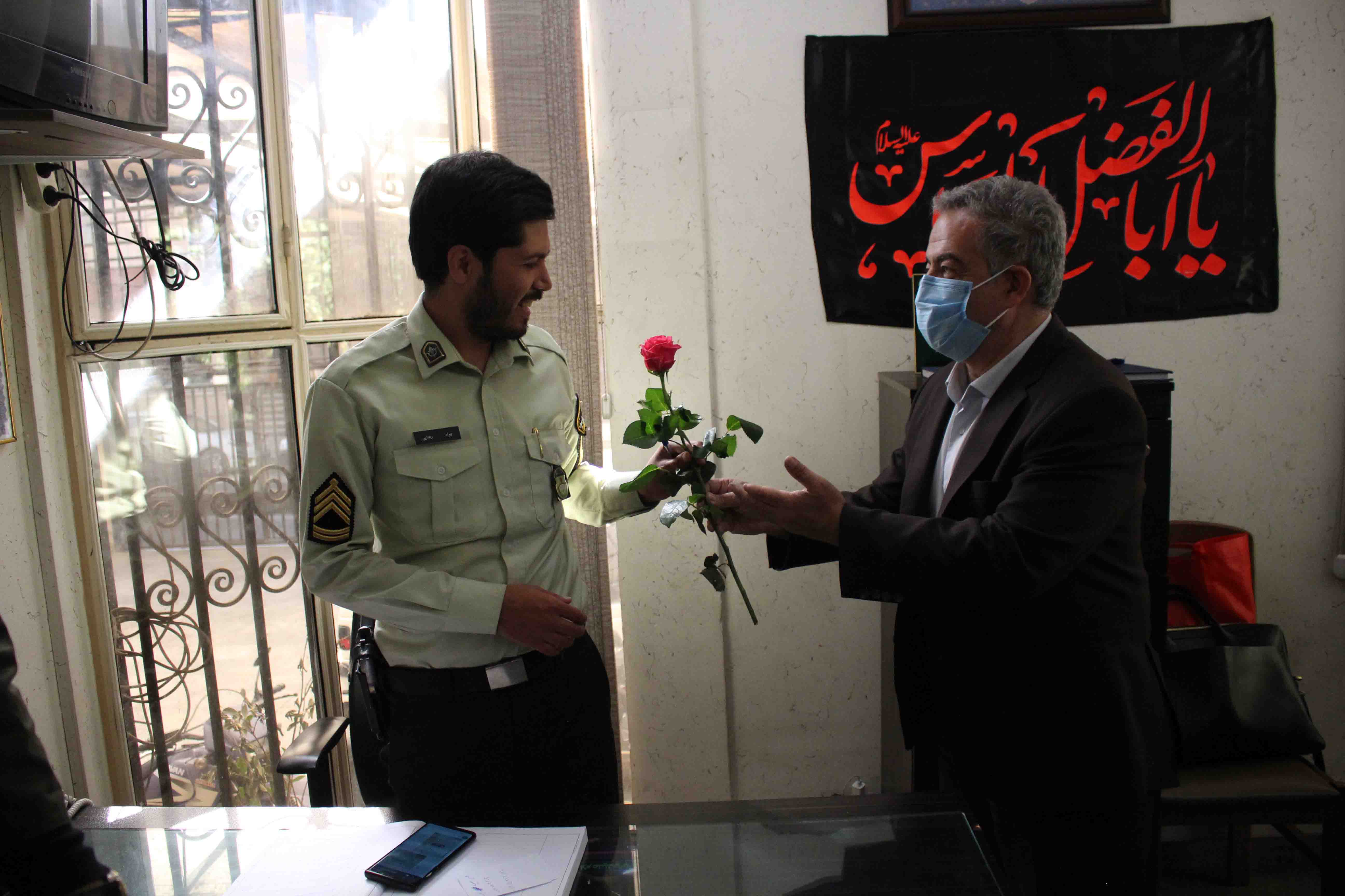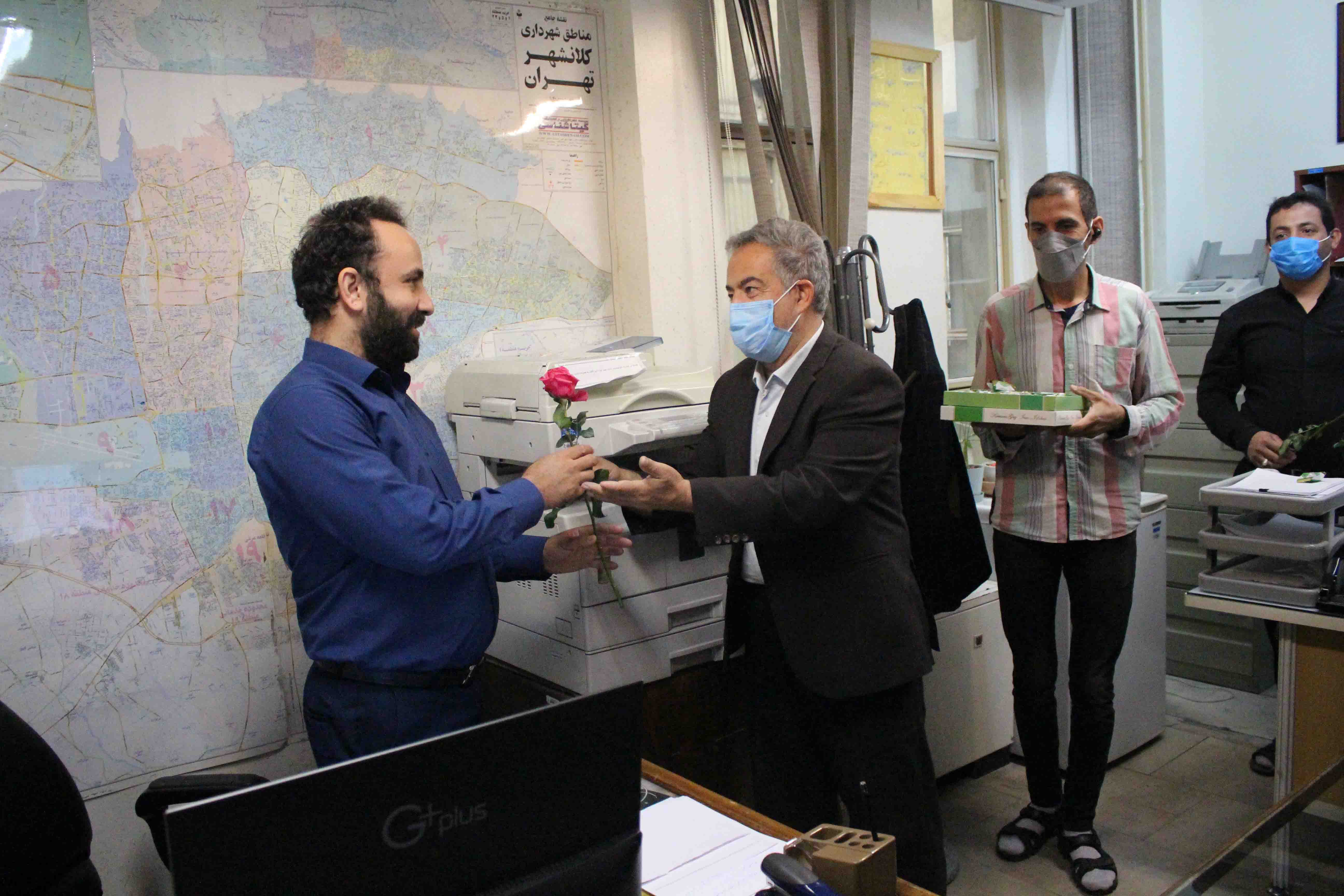 به گزارش روابط عمومی فرمانداری تهران علی کمالی فرمانده پایگاه مقاومت بسیج به همراه جمعی از اعضای پایگاه مقاومت بسیج به مناسبت هفته دفاع مقدس با حضور در محل کار همکاران با اهدا گل و توزیع شیرینی به پرسنل ، هفته دفاع مقدس را تبریک گفتند.