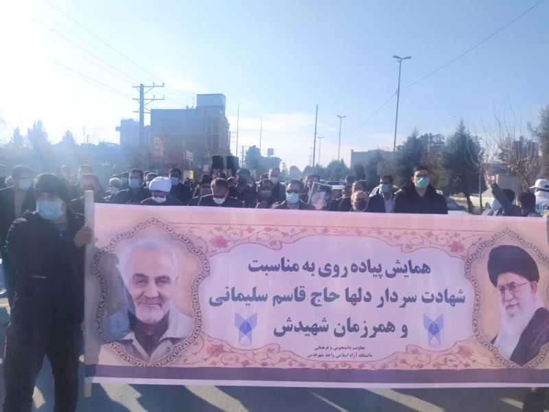 برگزاری همایش راهپیمایی به مناسبت بزرگداشت شهادت سردار سلیمانی در شهرستان قدس