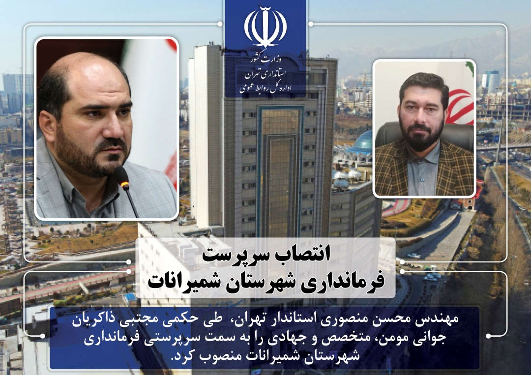 استاندار تهران طی حکمی سرپرست فرمانداری شهرستان شمیرانات را منصوب کرد.