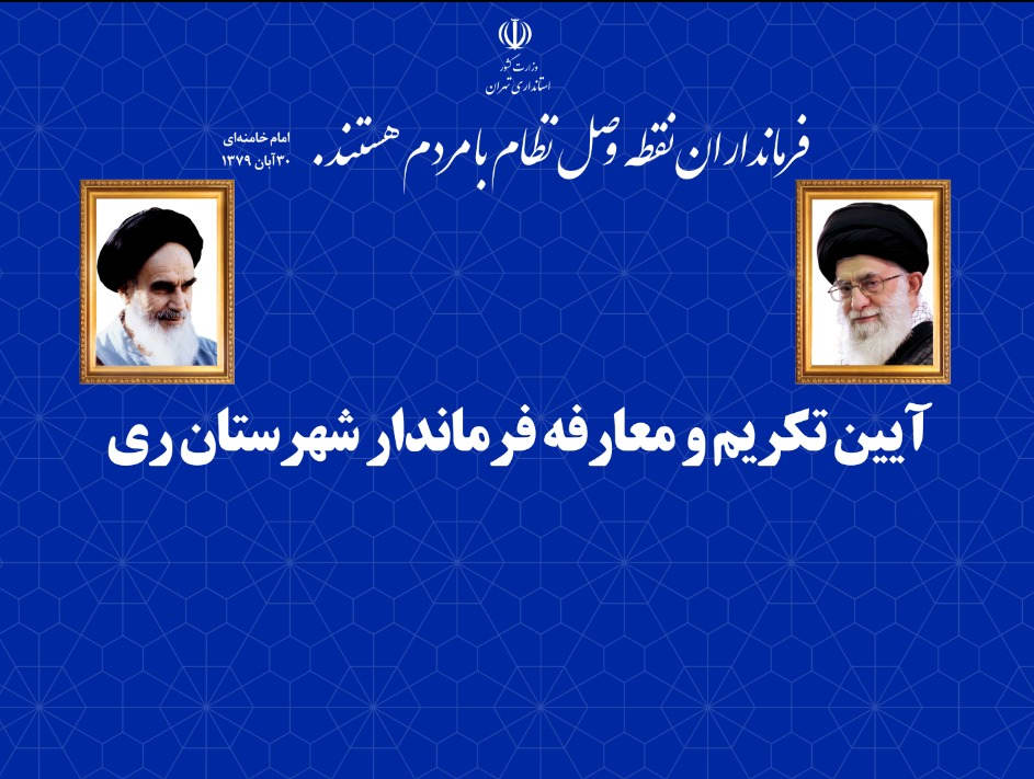 مدیرکل روابط عمومی استانداری تهران از برگزاری آیین تکریم و معارفه فرماندار ری در روز چهارشنبه 25 اسفند ماه خبر داد.