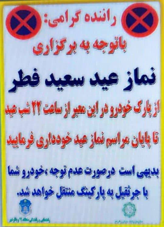 شایان ذکر است از ساعت 24 شب عید تا پایان مراسم نماز مسیرهای خروجی از کوچه های نهم الی سیزدهم مسدود می باشد و شهروندان برای تردد میتوانند از مسیرهای جایگزین استفاده نمایند