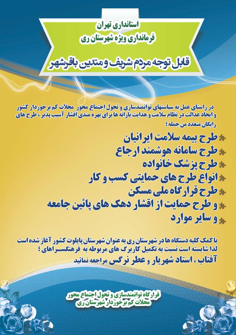 قرارگاه توانمندسازی و تحول اجتماع محورمحلات کم برخوردار شهرستان ری، اجرا میکند :