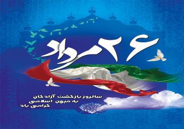 اینجانب، ضمن ادای احترام به روح مطهر شهدای والامقام هشت سال دفاع مقدس، ۳۶ هزار شهید استان تهران و امام شهیدان، ۲۶ مرداد ماه سالروز بازگشت آزادگان سرافراز به میهن اسلامی را گرامی داشته و از مضجع شریف سرور و سالارشهیدان حضرت امام حسین (ع) برای این عزیزان عزت، سربلندی و عاقبت بخیری را مسئلت دارم.