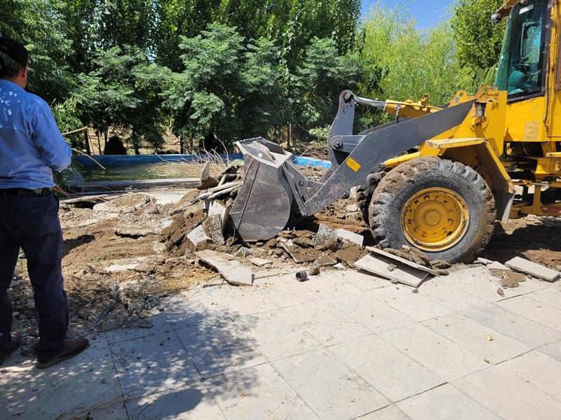 مدیر جهاد کشاورزی در این خصوص اظهار داشت: پرسنل وظیفه شناس و کوشای جهاد کشاورزی شهرستان پس از بررسی ها و هماهنگی های لازم و تامین ادوات قلع و قمع ، جهت تسریع در ایفای وظایف در ساعات اولیه صبح روز سه شنبه 25مردادماه به همراه مامورین نیروی انتظامی و نمایندگان محترم رئیس حوزه قضایی و شهردار ناحیه 4 بخش آفتاب، در محل قرار حاضر و دیوارکشی ها و ابنیه های در حال ساخت را قلع و قمع نمودند.