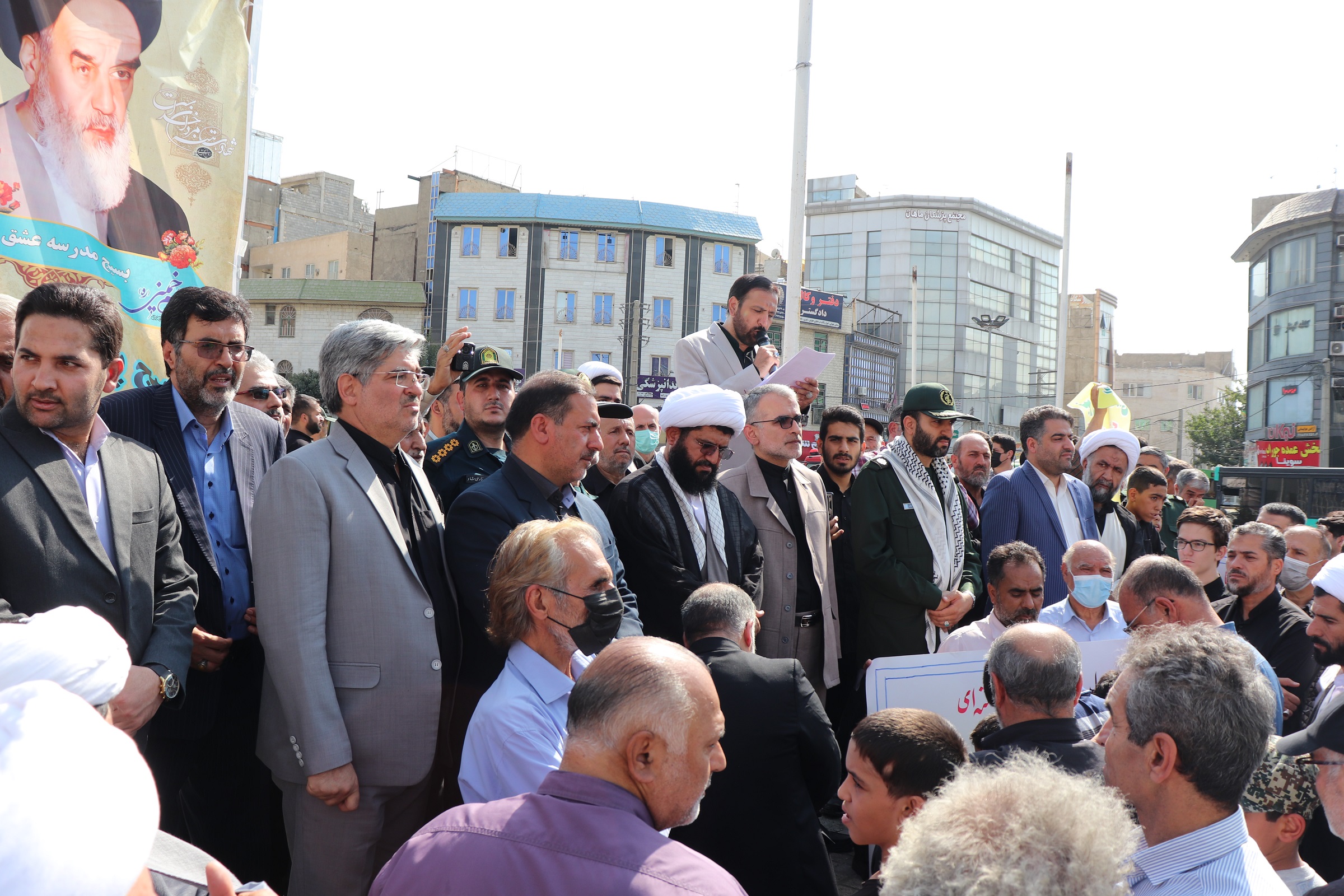 مقام عالی دولت در شهرستان قدس گفت: در سوریه به بهانه‌های واهی در خصوص چند دانش‌آموز  اعتراضات مردمی را شکل دادند و با این امر جنگ داخلی را شروع و سوریه را هفت سال در معرض تجاوزات داعش و جریانات تکفیری قرار دادند ولی مستشاران نظامی، جوانان، مدافعان حرم و سلسله مقاومت‌های جمهوری اسلامی ایران  با مجاهدت‌های سردار شهید حاج قاسم سلیمانی نگذاشت دشمنان و استکبار جهانی به اهداف خود در سوریه و منطقه دست پیدا کنند.