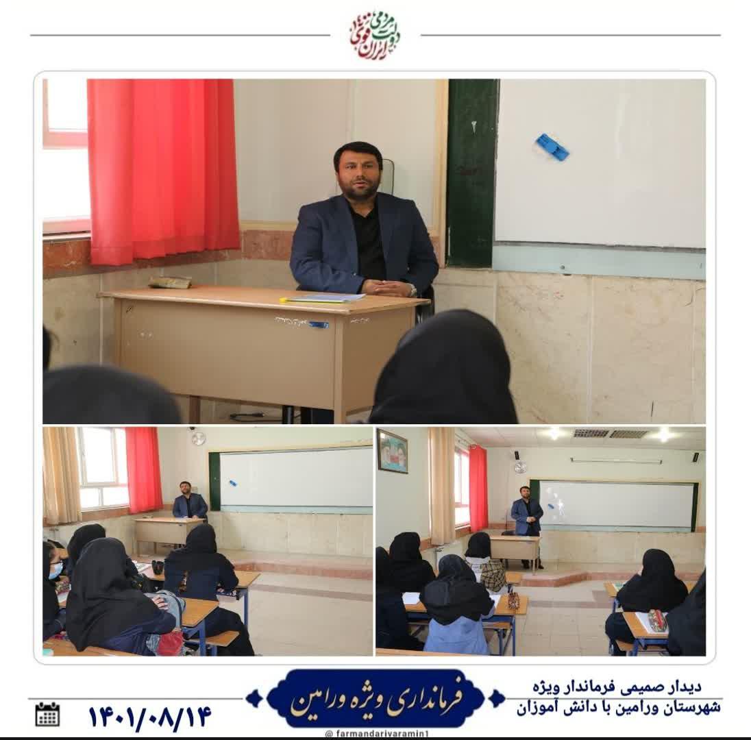 درویشی فرماندار ویژه شهرستان ورامین با حضور در یکی از مدارس ورامین با دانش آموزان دیدار و گفتگو کرد.
