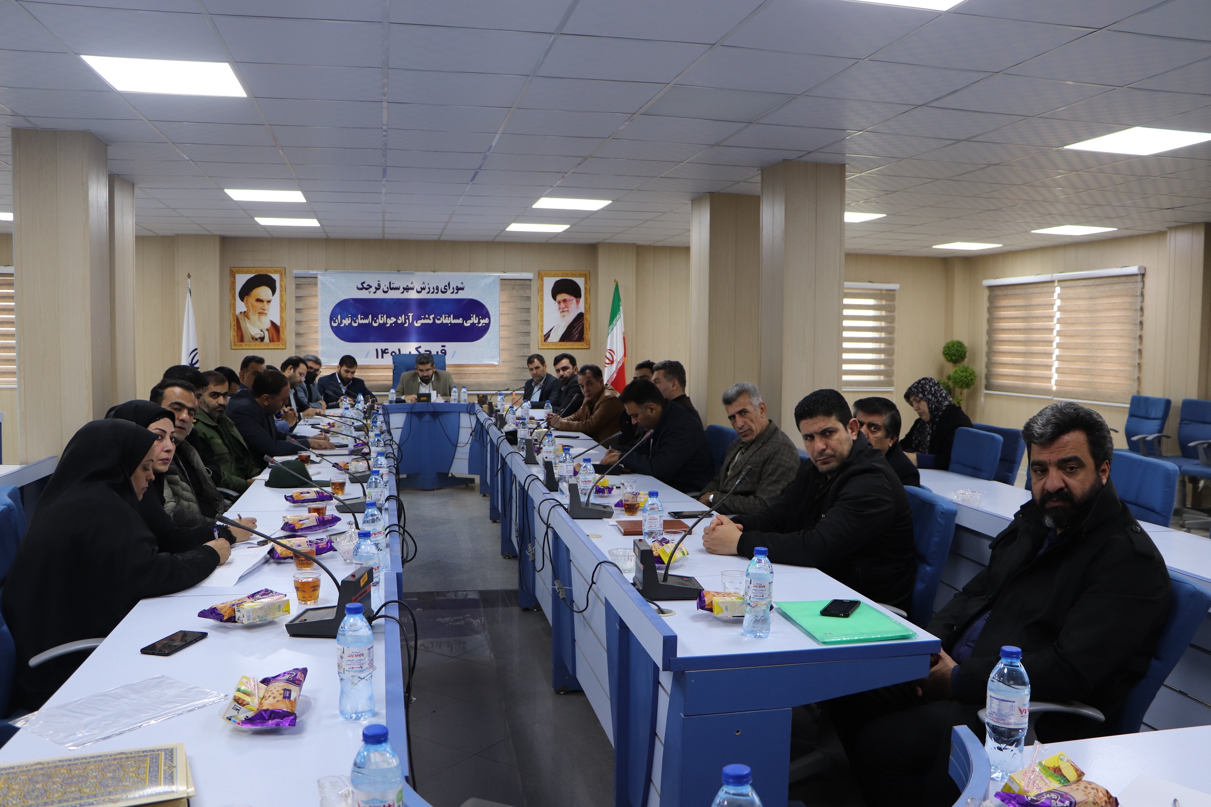 به گزارش روابط عمومی فرمانداری قرچک، روز چهارشنبه ۱۶ آذر، جلسه شورای ورزش شهرستان قرچک به ریاست فاتحینژاد فرماندار، ایرجی معاونت توسعه امور ورزشی استان، میریزاده معاون سیاسی فرمانداری، محمدی رییس اداره ورزش و جوانان و سایر رؤسای ادارات و جمعی از اهالی کشتی شهرستان با موضوع میزبانی مسابقات کشتی آزاد جوانان استان تهران در سالن جلسات فرمانداری قرچک برگزار شد.