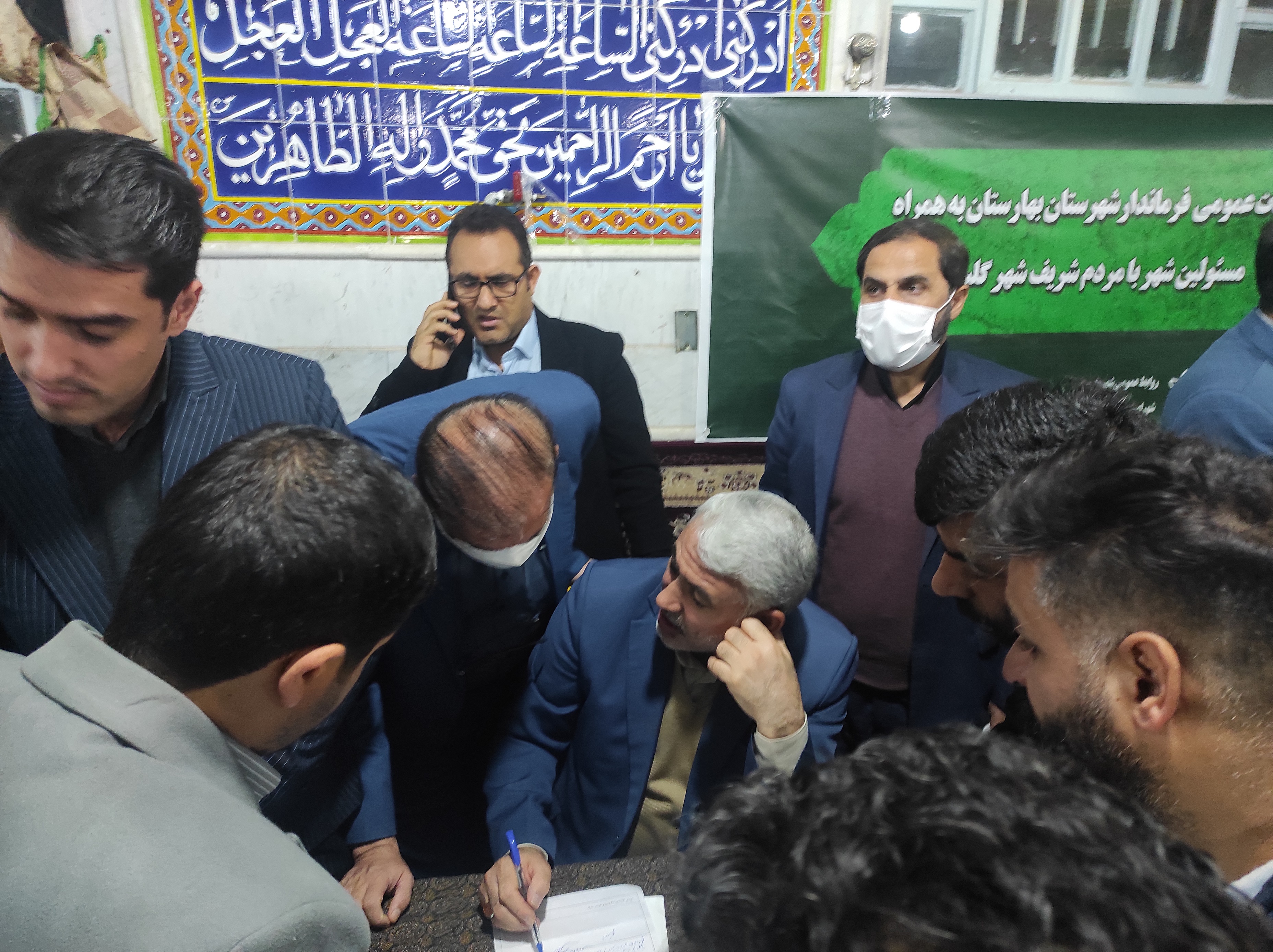 به گزارش روابط عمومی فرمانداری شهرستان بهارستان همزمان با اقامه نماز مغرب و عشا فرماندار شهرستان بهارستان به منظور رسیدگی به مشکلات ارباب رجوع و مراجعه کنندگان به همراه معاونین و روسای ادارات خدمات رسان با مردم شهر گلستان درحسینیه حضرت ابوالفضل علیه السلام همدانیهای  سلطان آباد دیدار کرد.