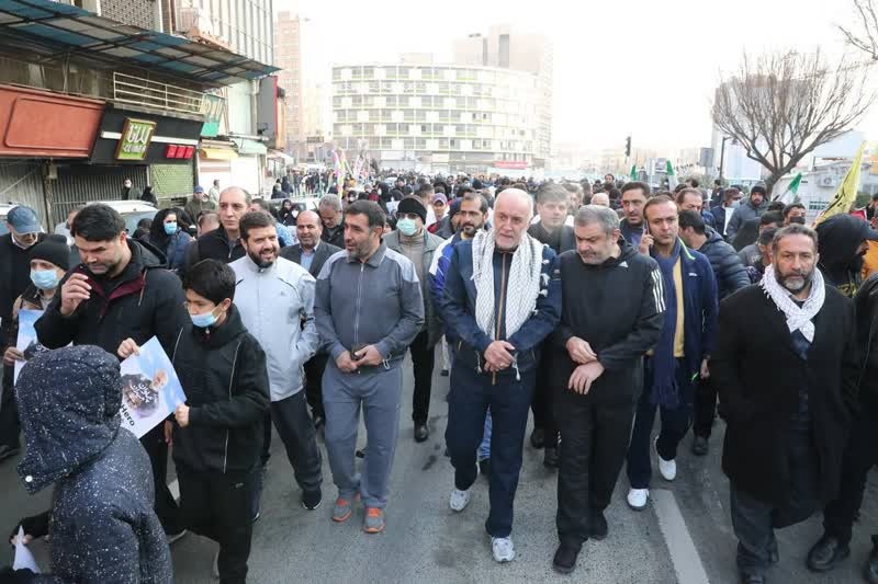 به گزارش پایگاه اطلاعرسانی استانداری تهران؛ به مناسبت یومالله 9 دی و سومین سالگرد شهادت سردار حاج قاسم سلیمانی، همایش بزرگ ورزشی «پهلوان جان فدا» با حضور فخاری استاندار تهران، کلهر معاون فرهنگی و همگانی وزارت ورزش و جوانان، علی جوادی مدیرکل ورزش و جوانان استان تهران، جوهری فرماندار تهران، میرجلیلی رئیس سازمان بسیج ورزشکاران و رؤسای فدراسیونهای تنیس روی میز، بوکس، همگانی، جانبازان و معلولین، رؤسای هیاتهای ورزشی استان تهران، رؤسای ادارات ورزش و جوانان و حوزه های جنوب غرب، شمال شرق، شمال غرب، شمیرانات و ری برگزار شد.