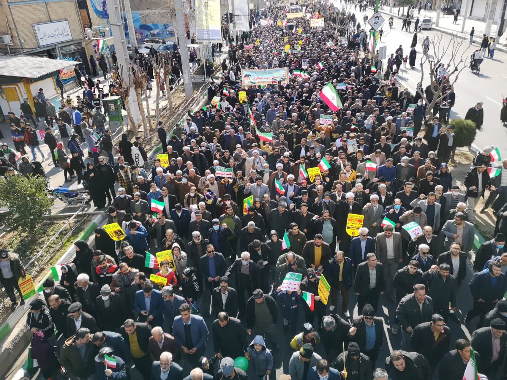 در این راهپیمایی که از میدان امام خمینی (ره) تا مصلای نماز جمعه برگزار شد اقشار مختلف مردم و مسئولان به ویژه خانواده شهدا و نوجوانان با سردادن شعارهایی مانند ای رهبر آزاده آماده ایم آماده و مرگ بر آمریکا مرگ بر انگلیس در این مسیر راهپیمایی کردند.
