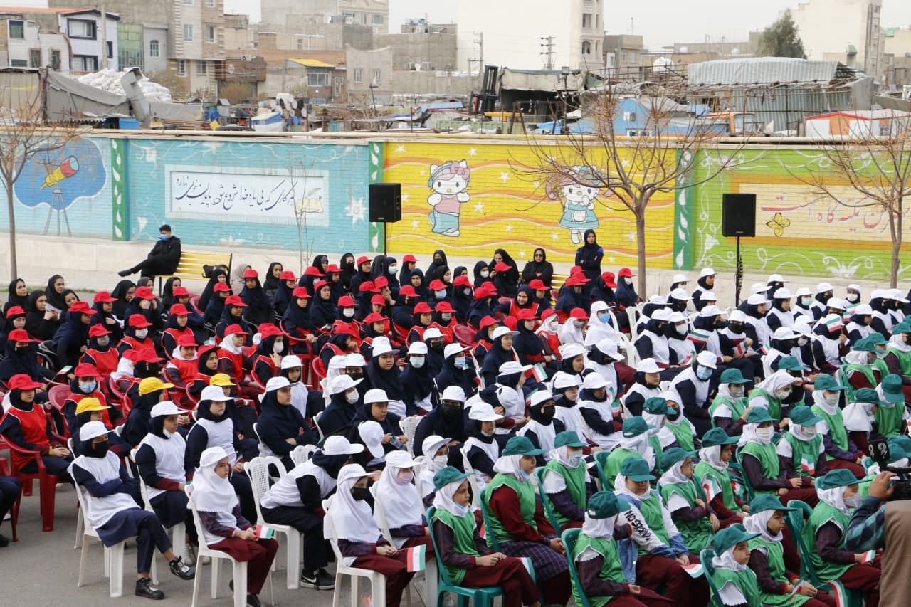 مرحله دوم طرح کشوری شهید سلیمانی به منظور بهبود فضاهای ورزشی مدارس از طریق ارتباط زنده تصویری با حضور وزیر آموزش و پرورش در دبیرستان حضرت معصومه (س) شهرری افتتاح شد.