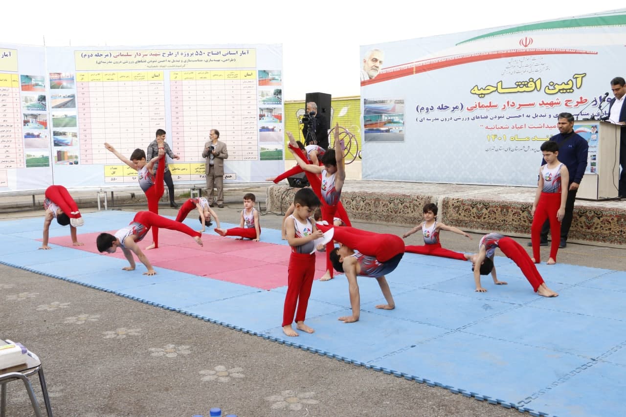 ۳۸۱ زمین چمن مصنوعی و کفپوش روباز، ۵۰ زمین ساحلی، ۲۳ سالن ورزشی سقف بلند و ۹۶ کلاس درس تربیت بدنی روز سه شنبه در مرحله دوم این طرح با حضور وزیر آموزش و پرورش و به صورت بر خط در سراسر کشور افتتاح شد.