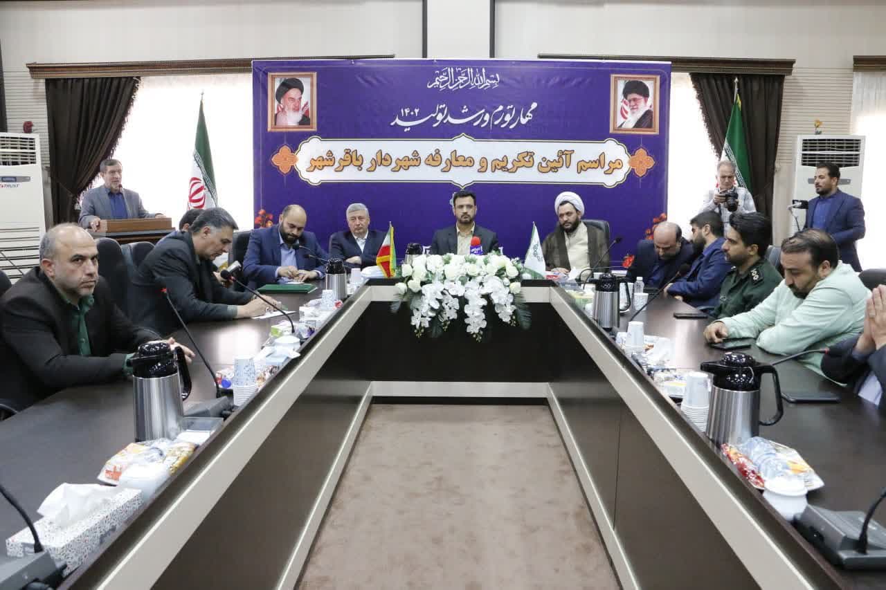 در این مراسم که باحضور غراوی معاون هماهنگی امور عمرانی استانداری تهران، بشارت سرپرست فرمانداری ویژه شهرستان ری، رحمتی مدیر کل دفتر امور شهری و شوراهای استانداری تهران، حجت الاسلام و المسلمین استیری امام جمعه و بادلی بخشدار کهریزک، رئیس حوزه قضائی کهریزک و تعدادی از مسئولین شهرستان برگزار گردید، با حکم استاندار تهران مرتضی همتی بعنوان شهردار جدید باقرشهر منصوب شد.