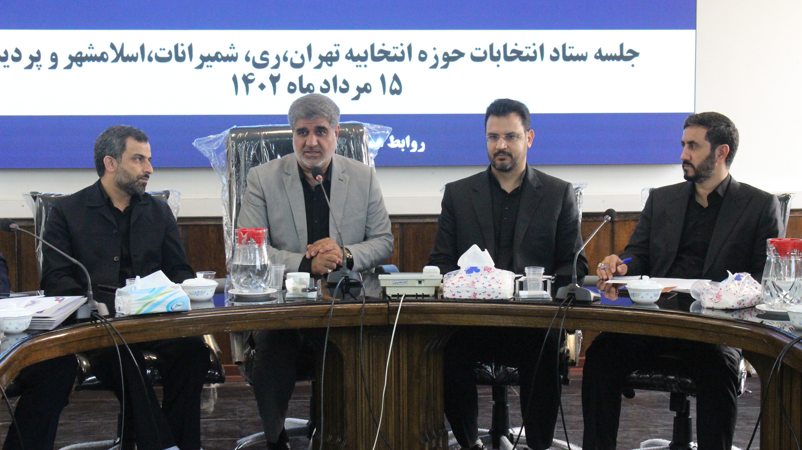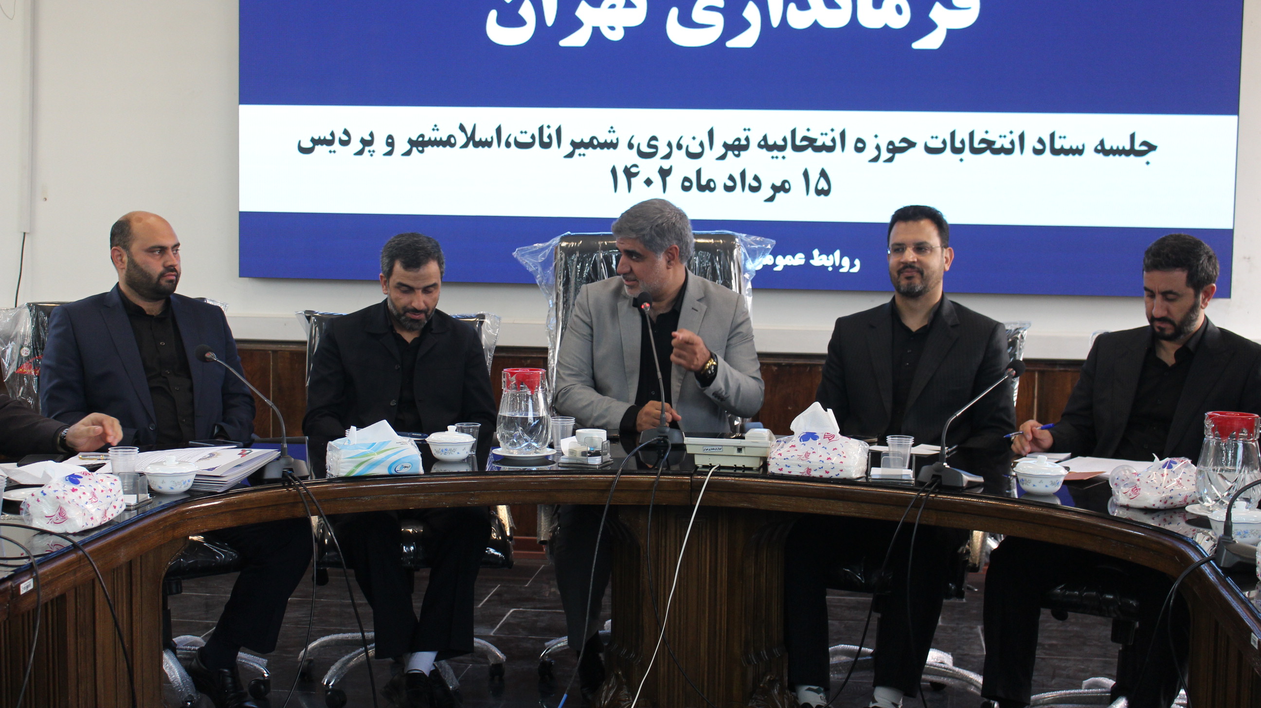 به گزارش روابط عمومی فرمانداری تهران، صبح روز یکشنبه ۱۵ مرداد ماه ۱۴۰۲ با حضور قیومی معاون استاندار و فرماندار تهران، ضیائی مدیرکل سیاسی، انتخابات و تقسیمات کشوری استانداری تهران، بشارت سرپرست فرمانداری ویژه شهرستان ری، ذاکریان فرماندار شهرستان شمیرانات، حبیبی فرماندار شهرستان اسلامشهر، قضاتلو سرپرست فرمانداری شهرستان پردیس، شایان معاون سیاسی اجتماعی فرمانداری تهران و معاونین سیاسی فرمانداری های ری، شمیرانات، اسلامشهر، پردیس، شایان معاون سیاسی اجتماعی فرمانداری و رئیس ستاد انتخابات شهرستان تهران، زارعی معاون برنامه ریزی و توسعه فرمانداری تهران، بشیری معاون هماهنگی امور عمرانی فرمانداری تهران، مرادی معاون امنیتی انتظامی فرمانداری تهران و سایر مدعوین، جلسه ستاد انتخابات حوزه انتخابیه تهران، ری، شمیرانات، اسلامشهر و پردیس با دستور کار بررسی آخرین اقدامات صورت گرفته در حوزه های انتخابیه فرعی در محل سالن جلسات شهید سردار حاج قاسم سلیمانی فرمانداری تهران برگزار شد.