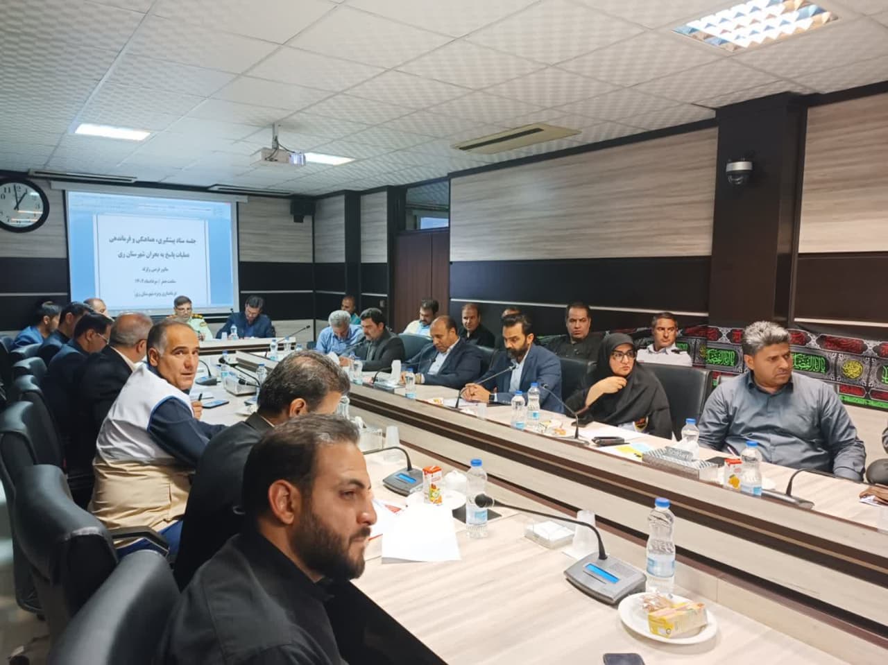 مانور شبیهسازی زلزله ساعت صفر در شهرستان ری با اعلام فرماندار ویژه شهرستان و تشکیل جلسه اضطراری ستاد پیشگیری، هماهنگی و فرماندهی عملیات پاسخ به بحران شهرستان بامداد روز پنجشنبه و در کمترین زمان با حضور یزدی مهر مدیرکل ستاد مدیریت بحران استان تهران، بخشداران، شهرداران، مدیران ادارات و دستگاههای امدادی، اجرایی و خدمات رسان برگزار شد.