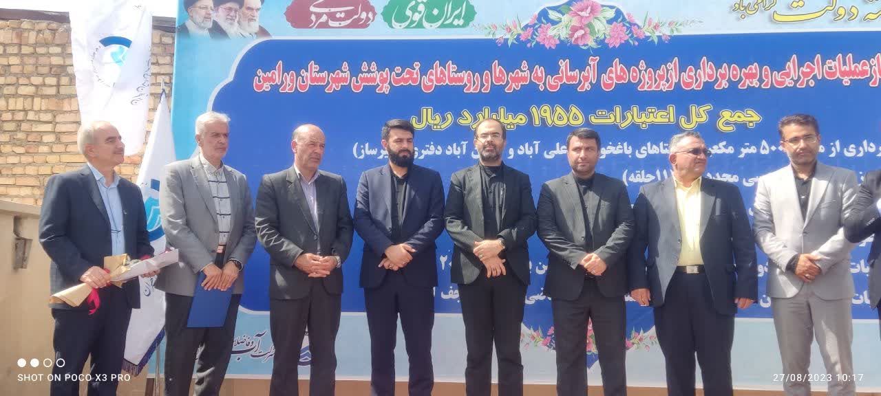 به گزارش روابط عمومی فرمانداری ویژه شهرستان ورامین ،این مراسم با حضور مجید درویشی فرماندار ویژه شهرستان ورامین ،بقایی مدیر عامل شرکت آبفا جنوب شرق استان تهران ،حاجبی مدیر عامل مجمع خیرین آبرسان کشور ،محمدی معاونت امور فنی و عمرانی ،زاهدی بخشدار مرکزی ،مرادی بخشدار جواد آباد به صورت متمرکز در مجمع آبرسانی روستایی علی آباد قشقایی ،باغ خواص ،حسین آباد دفتری برگزار شد .