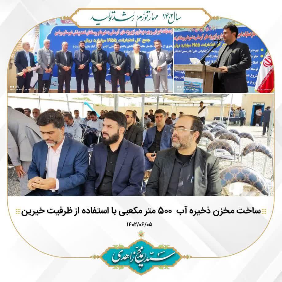 مجید درویشی فرماندار ویژه شهرستان ورامین در این مراسم گفت : مخزن ۵۰۰ مترمکعبی روستاهای علی آباد و باغ خواص و حسین آباد، حفر و بهسازی ۱۱حلقه چاه، اصلاح شبکه فرسوده  به طول ۱۴/۲ کیلومتر، توسعه شبکه انتقال به طول ۸/۱ کیلومتر، شروع فاز دوم مخزن ذخیره سازی آب شهر ورامین با ظرفیت ۲۰۰۰۰ متر مکعبی، شروع اجرایی مخزن ۱۰۰۰ متر مکعبی روستاهای نجف آباد حصار قاضی وطغان ،از جمله پروژه هایی است که با مبلغ ۱۹۵۵ میلیارد ریال امروز آغاز و به بهره برداری می رسد  .