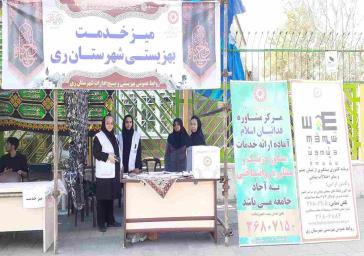 کارشناسان معاونت‌های تخصصی بهزیستی شهرستان ری دراین مراسم از ساعت ۶ صبح روز اربعین با حضور در محل استقرار میزهای خدمت این اداره به خدمت رسانی به جامعه هدف بهزیستی و مردم پرداختند و پاسخگوی سوالات و مشکلات مردم و مدد جویان بودند.