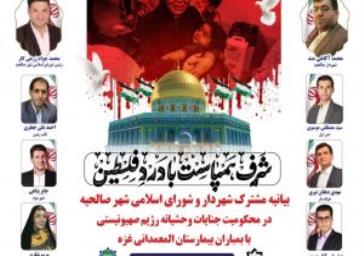 بیانیه مشترک شهردار و شورای اسلامی شهر صالحیه در محکومیت جنایات وحشیانه رژیم صهیونیستی با بمباران بیمارستان المعمدانی غزه