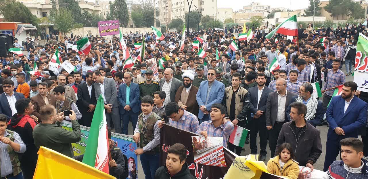اردستانی افزود: در سیزدهم آبان ماه سال 1358 دانشجویان انقلابی درحمایت از دانش آموزان شهید با تسخیرلانه جاسوسی انقلابی بزرگ را رقم زدند و ما امروز در روز مبارزه با استکبار جهانی ، بار دیگر با مشت های گره زده و فریاد هایمان باآرمان های حضرت امام خمینی (ره ) و شهدای گرانقدر انقلاب اسلامی تجدید بیعت خواهیم کرد .