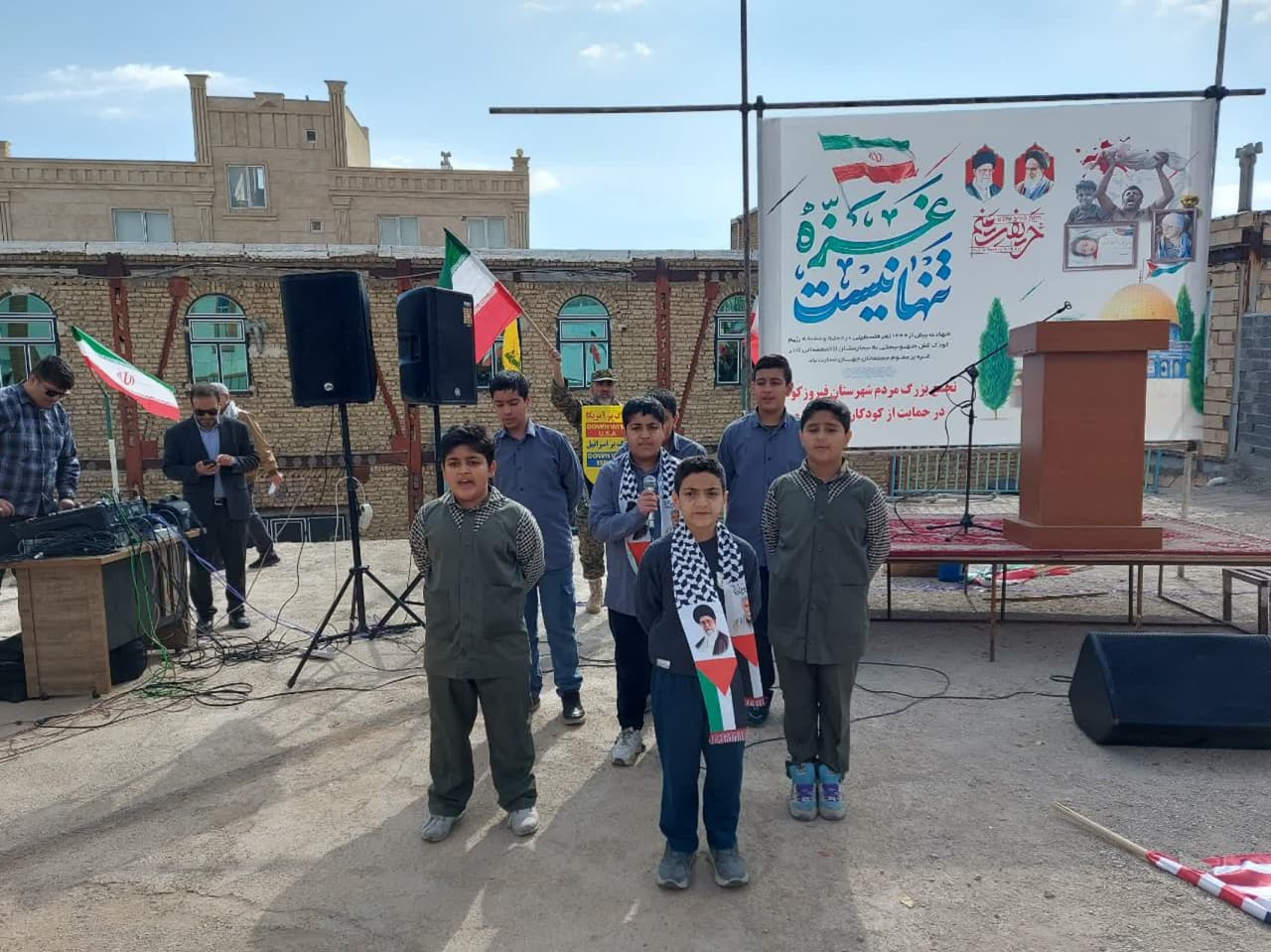 این تجمع که با حضور برخی از مسئولان و مردم ولایت مدار شهرستان فیروزکوه برگزار شد، با سر دادن شعار و در دست داشتن پوستر مرگ بر آمریکا و اسرائیل، جنایات رژیم کودک کش صهیونسیتی را محکوم کردند.