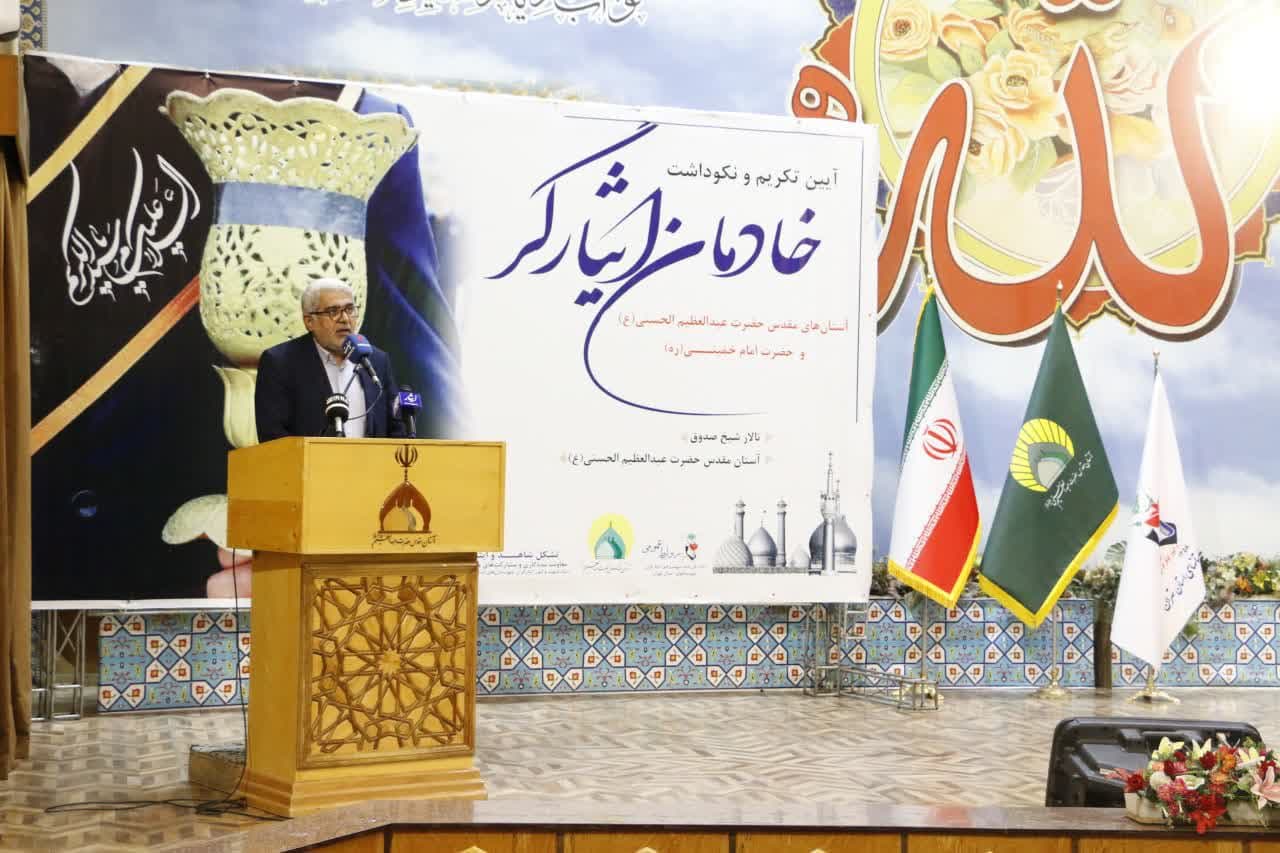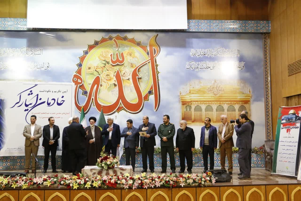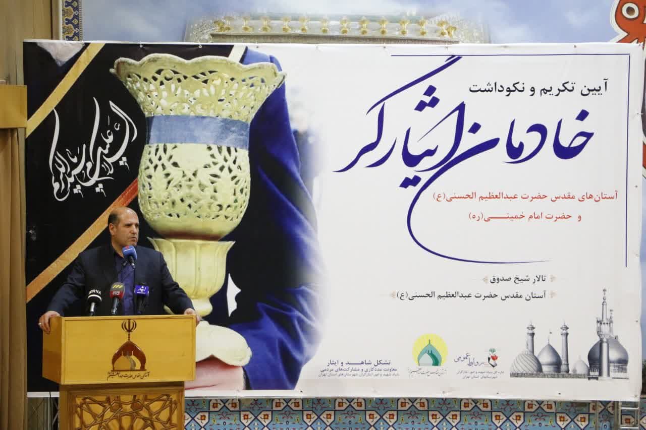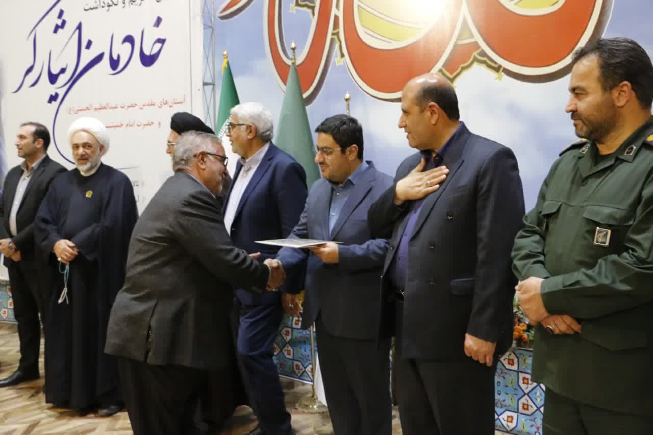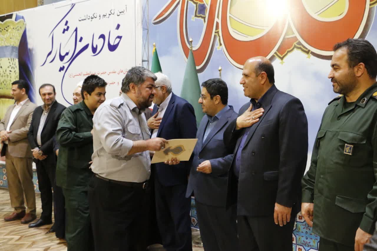 در این مراسم که باحضور رضایی مدیرکل بنیاد شهید و امور ایثارگران شهرستان های استان تهران، نصراله رییس بنیاد شهید و امور ایثارگران شهرستان ری، سرهنگ قنبری فرمانده سپاه ناحیه حضرت عبدالعظیم «ع» و سایر مسئولین و باحضور خانواده های معظم شهداء و ایثارگران در محل تالار شیخ صدوق آستان حضرت عبدالعظیم «ع» برگزار شد، از خدام آستان های مطهر حضرت سیدالکریم «ع» و حضرت امام خمینی «ره» که مفتخر به داشتن سابقه ایثارگری در جبهه های نبرد حق علیه باطل هستند، تجلیل بعمل آمد.