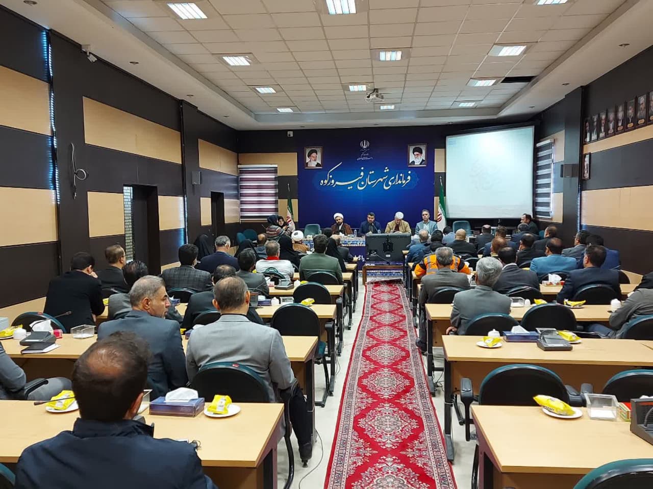 به گزارش روابط عمومی فرمانداری شهرستان فیروزکوه، جلسه شورای اداری شهرستان فیروزکوه به ریاست محمد حیدری منش فرماندار فیروزکوه و با حضور امام جمعه شهرستان، معاونین فرمانداری، رئیس دادگستری شهرستان، اعضای شورای تأمین فیروزکوه، بخشدار ارجمند، شهردار فیروزکوه و سایر مسئولان شهرستان در محل فرمانداری فیروزکوه برگزار شد.