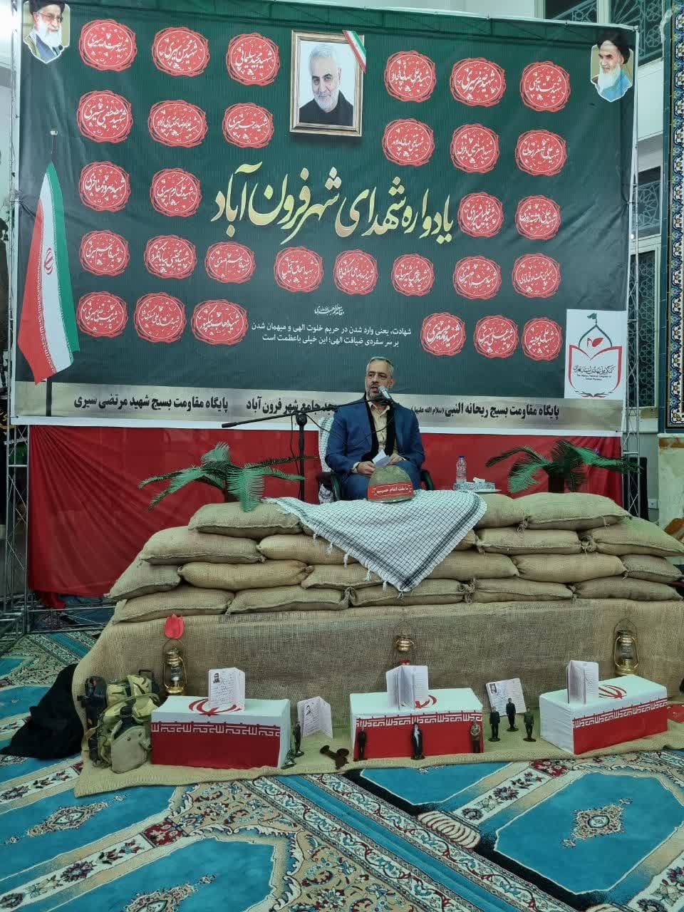 مراسم یادواره شهدای شهر فرون آباد همزمان با هفته گرامیداشت بسیج در مسجد جامع شهر فرون آباد برگزار شد.