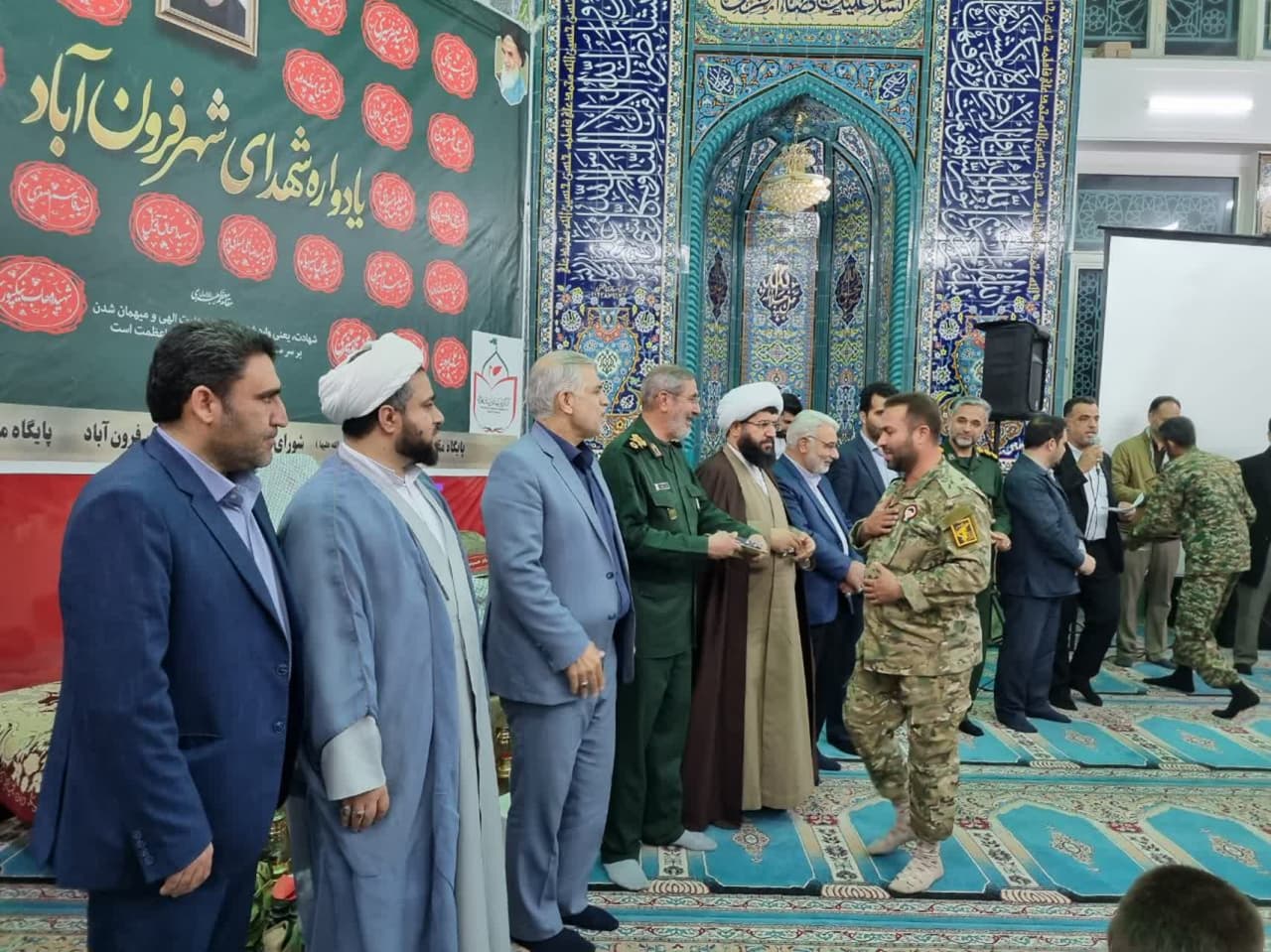 به گزارش روابط عمومی شهرداری و شورای اسلامی شهر فرون آباد، مراسم یادواره شهدای شهر فرون آباد با سخنرانی سردار سرتیپ احمد ذوالقدر فرمانده سپاه حضرت سیدالشهداء (ع) استان تهران و با حضور خانواده های معظم و معزز شهدا، جانبازان و ایثارگران، حجت الاسلام و المسلمین جوکار امام جمعه شهرستان پاکدشت، کارخانه سرپرست فرمانداری پاکدشت و معاونین فرمانداری، فرهاد بشیری نماینده مردم در مجلس شورای اسلامی، سرهنگ امجدی فرماندهی ناحیه مقاومت بسیج حضرت ثامن الحجج (ع) شهرستان پاکدشت، محمد عسگری فرد سرپرست شهرداری، محمود علی عسگری فرد رئیس، موسی سیری نایب رئیس، زهرا علی عسگری عضو هیئت رئیسه، فرهاد جهانگیری و جواد سندگل اعضای شورای اسلامی شهر فرون آباد، عزیزپور رئیس بنیاد شهید و امور ایثارگران، سروان علیمحمدی فرمانده حوزه مقاومت بسیج 6 امام جعفر صادق (ع)، ائمه جماعت مساجد و فرماندهان پایگاه های بسیج، بسیجیان سلحشور و شهروندان شهر فرون آباد و سایر مسئولان در مسجد جامع برگزار شد.