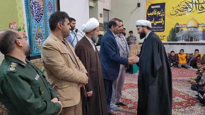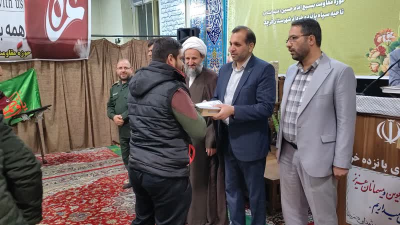 در این مراسم از بسیجیان نمونه، متأهل و روحانی با اهدای لوح سپاس و هدیه تجلیل بعمل آمد.
