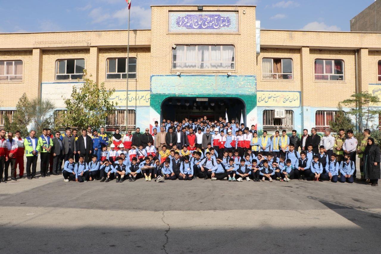 بیستوپنجمین مانور سراسری زلزله و ایمنی با هدف کسب آمادگی بیشتر، رفع کمبودها و کاستیهای احتمالی و ایجاد هماهنگی مابین سازمانهای امدادی، خدماتی، درمانی و... صبح امروز چهارشنبه ۸ آذرماه در دبیرستان پسرانه فرنو شهرقدس برگزار شد.