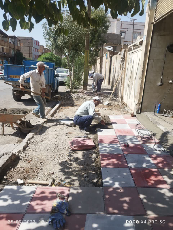 سنگ فرش بیش از 1900 مترمربع از پیاده روهای سطح شهر فرون آباد