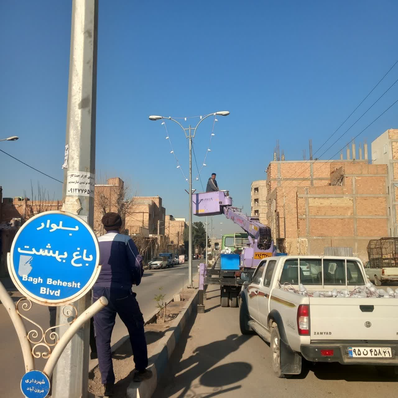 سرپرست شهرداری فرون آباد از نصب ریسه های روشنایی ورودی شهر و بلوار باغ بهشت خبر داد.