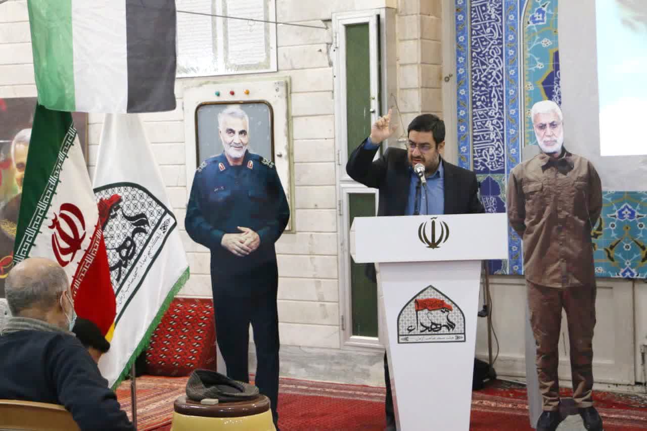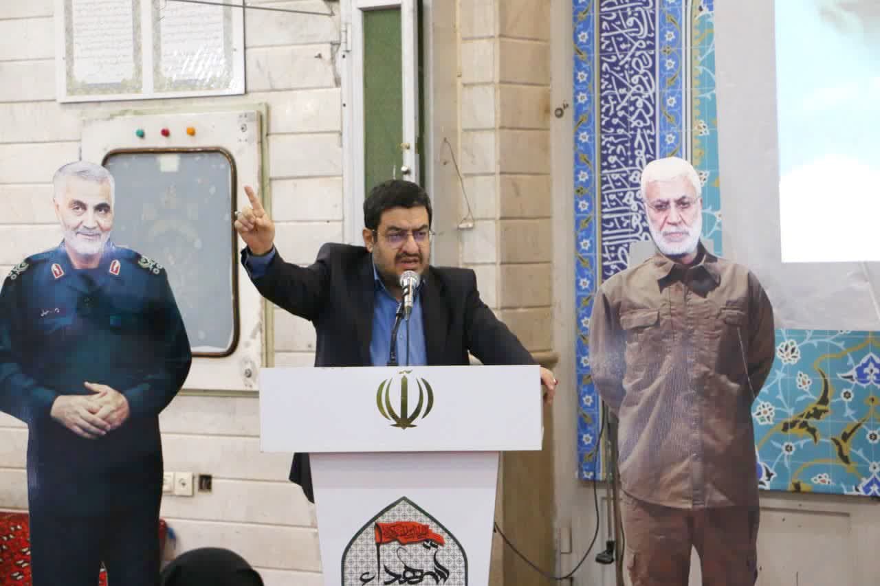 وی افزود: امروز در ایران یکی از سلاله پاک حضرت زهرا بیرق اسلام ناب محمدی را در دست گرفته و فرماندهی کل قوا را بر عهده دارد. پرچمی که در مرکز آن اسم جلاله الله حک شده است و امروز در دستان سید خراسانی بزرگواری است که همه ما مطیع و گوش به فرمان ایشان ایستاده و مقاومت خواهیم کرد و با اشاره ای از سوی ایشان در چشم بهم زدنی طومار پر از نحسی و روزگار پلید استکبار و صهیونیسم جنایتکار را در هم می نماییم.