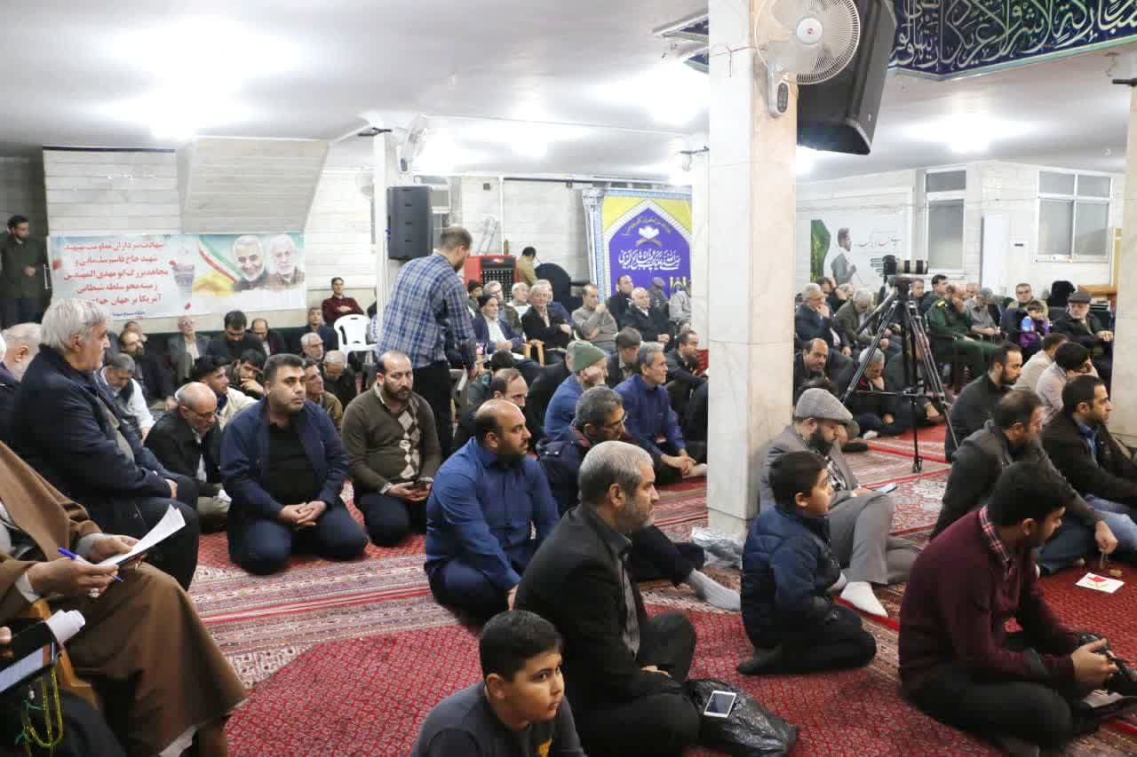 همزمان با فرارسیدن چهارمین سالگرد شهادت سردار رشید سپاه اسلام شهید حاج قاسم سلیمانی و وقوع حادثه حمله تروریستی در کرمان، به همت هیئت امناء و پایگاه بسیج مسجد حضرت صاحب الزمان «عج» مراسم گرامیداشتی باحضور معاون استاندار تهران و فرماندار ویژه شهرستان ری و مردم مؤمن و قدرشناس شهرری برگزار شد.