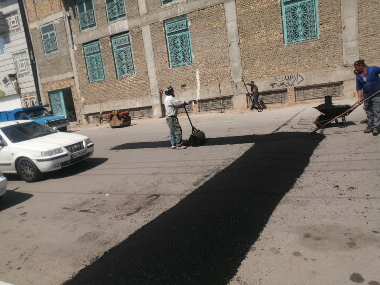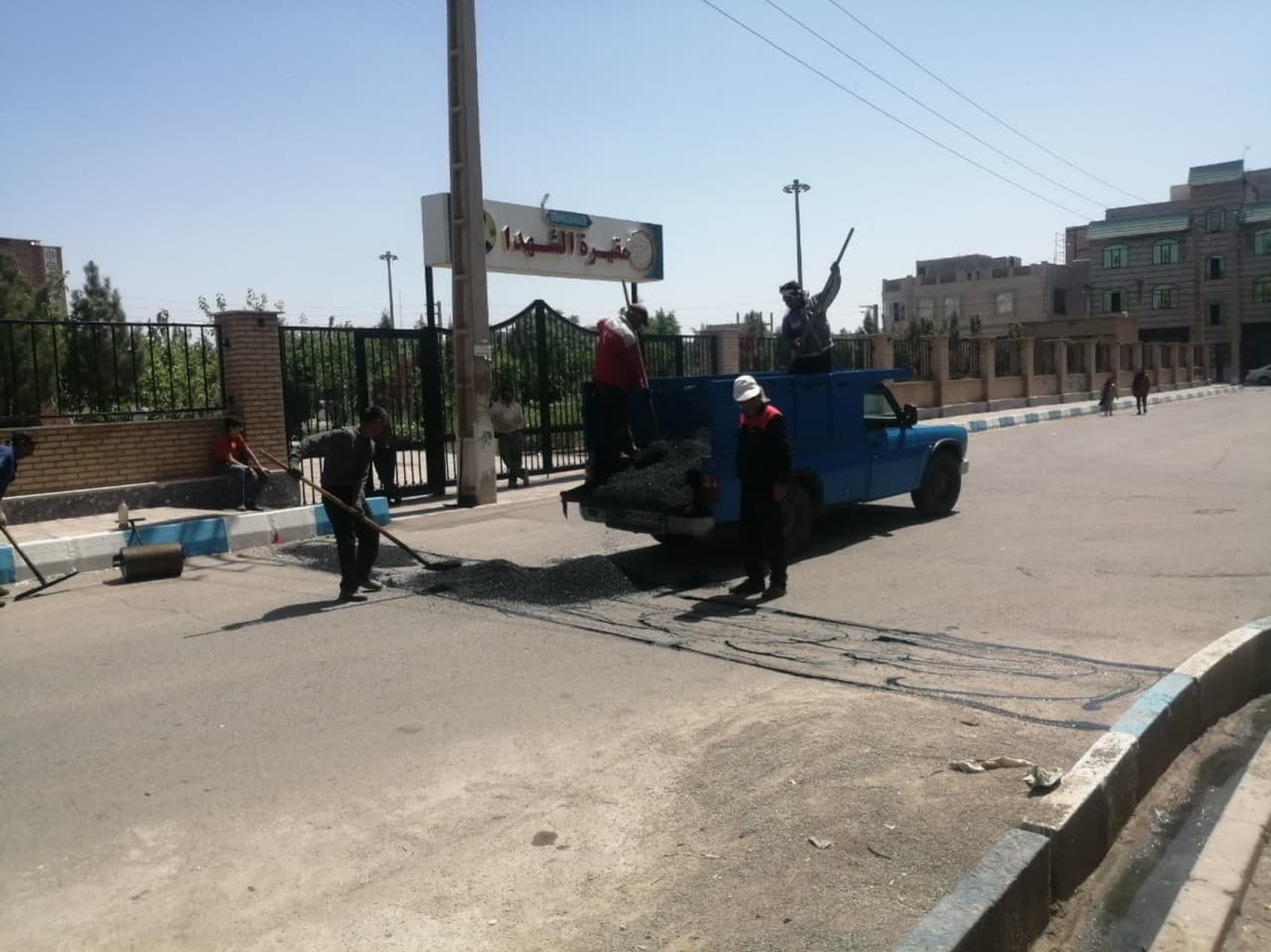 عملیات لکه گیری آسفالت معابر سطح شهر فرون آباد انجام شد