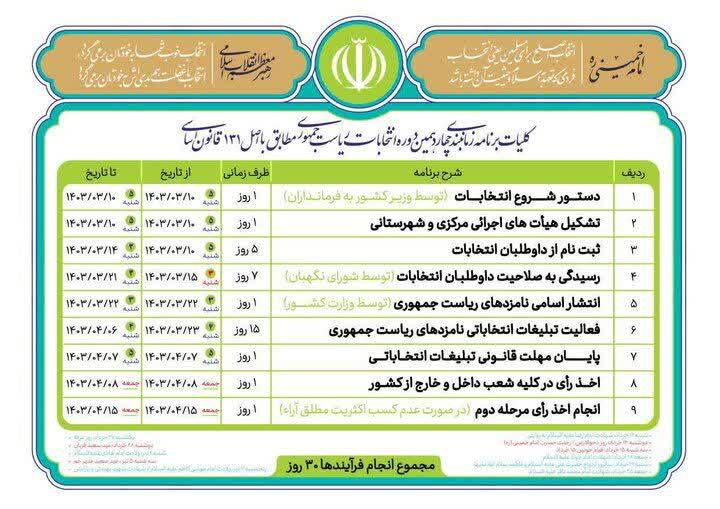 کلیات برنامه زمان بندی انتخابات ریاست جمهوری