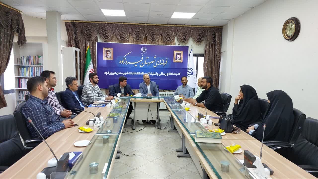 به گزارش کمیته اطلاع رسانی و تبلیغات شهرستان فیروزکوه،جلسه کمیته اطلاع رسانی و تبلیغات ستاد انتخابات شهرستان فیروزکوه با حضور سید مهرداد حسینی مدیر روابط عمومی فرمانداری و مسوول کمیته اطلاع رسانی ستاد انتخابات شهرستان فیروزکوه، محمدصادق اسفندیار دبیر ستاد انتخابات شهرستان و اعضای کمیته اطلاع رسانی ستاد انتخابات شهرستان در محل فرمانداری برگزار شد.