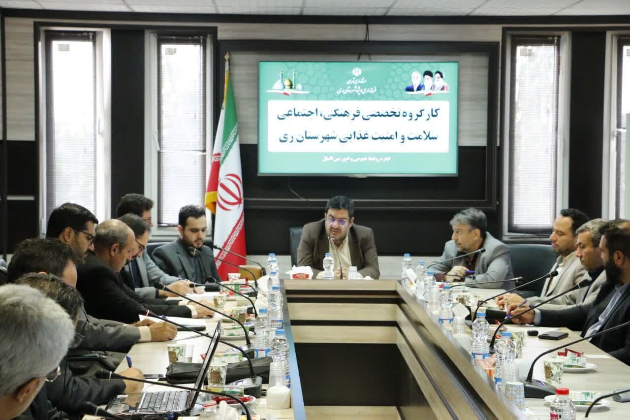 پنجمین نشست کارگروه فرهنگی، اجتماعی، سلامت و امنیت غذایی شهرستان ری به ریاست معاون استاندار تهران و فرماندار ویژه شهرستان ری و باحضور رؤسای ادارات و کارشناسان مربوطه برگزار شد.