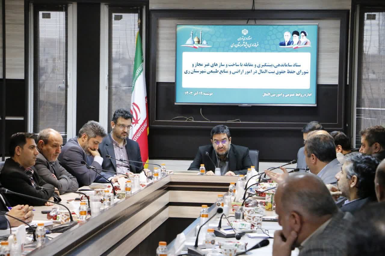 سومین نشست ستاد ساماندهی، پیشگیری و مقابله با ساخت و سازهای غیرمجاز مشترک با نشست شورای حفظ حقوق بیت المال در امور اراضی و منابع طبیعی شهرستان ری به ریاست فرماندار ویژه شهرستان ری برگزار شد.