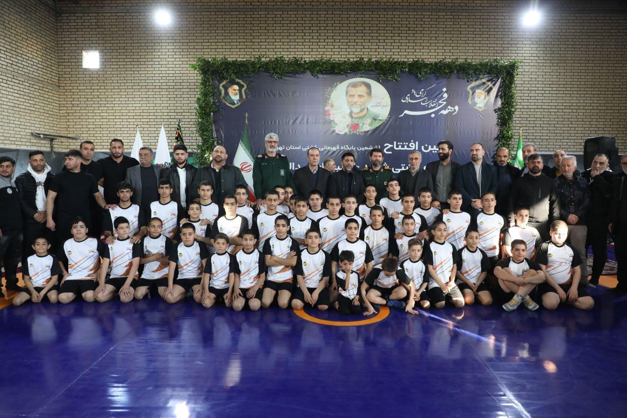 مراسم افتتاح ششمین پایگاه قهرمانی کشتی تهران با نام کشتی گیر شهید سردار حسین اسداللهی با حضور جمعی از مسئولین در محله هرندی تهران برگزار شد.