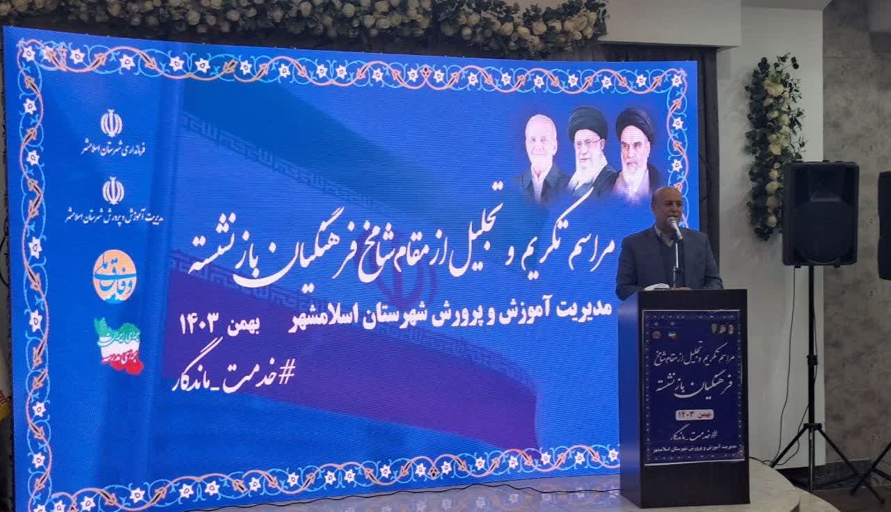 همچنین اکبر قنبری مدیر آموزش و پرورش اسلامشهر نیز در سخنانی گفت: این مراسم به سبب قدردانی از گنجینههای ارزشمند آموزشوپرورش در حال برگزاری است که سالها برای نظام تعلیموتربیت، خدمات شایستهای انجام داده و نسلی پر از امید و تلاش را پروراندهاند.