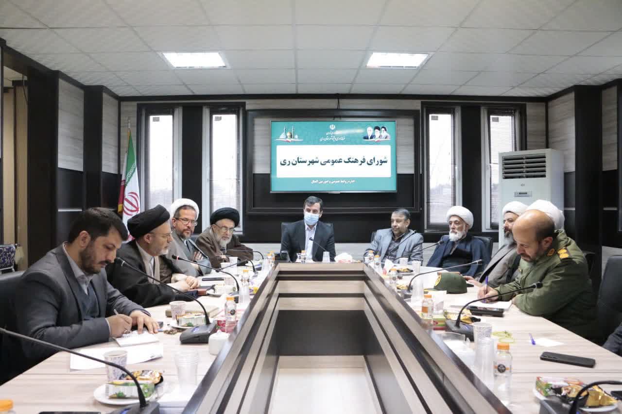 به گزارش اداره روابط عمومی فرمانداری ویژه ری، یکصد و بیست و یکمین نشست شورای فرهنگ عمومی شهرستان ری به ریاست حجت الاسلام والمسلمین سیدعلی شاهچراغی امام جمعه شهرری و باحضور بیژن سلیمان پور معاون استاندار تهران و فرماندار ویژه شهرستان ری و سایر اعضا در محل سالن جلسات شهدای مدافع حرم ساختمان فرمانداری برگزار شد.