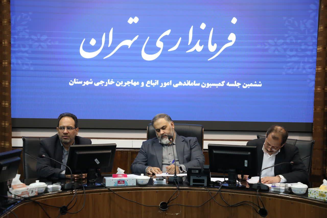 به گزارش روابط عمومی فرمانداری تهران، ششمین جلسه کمیسیون ساماندهی امور اتباع و مهاجرین خارجی شهرستان تهران روز شنبه ۱۸ اسفندماه به ریاست حامد شایان سرپرست معاونت امنیتی، انتظامی فرمانداری تهران و با حضور اعضای این کمیسیون در محل سالن جلسات سردار شهید حاج قاسم سلیمانی برگزار شد.