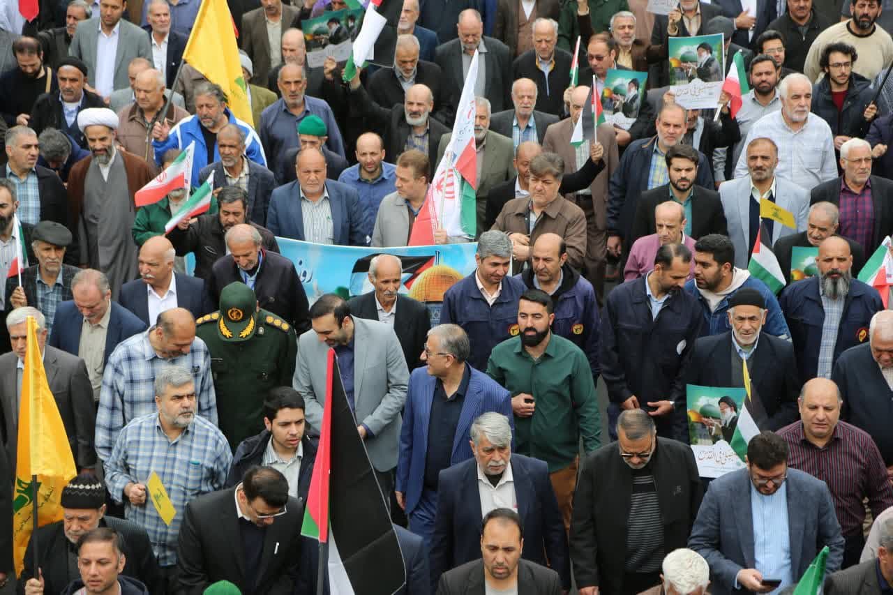 معاون استاندار تهران در ادامه ضمن محکومیت جنایات وحشیانه رژیم کودک کش و اشغالگر اسرائیل بویژه کشتار بیرحمانه زنان و کودکان و آواره نمودن هزاران نفر از مردم غزه، حضور پرشور مردم ایران در راهپیمایی روز جهانی قدس را انعکاس قدرتمند پیام همبستگی و مقاومت ملت ایران در مسیر آرمان نهایی جهان اسلام که همانا آزادی قدس شریف و نابودی رژیم ننگین و غاصب صهیونیستی از صفحه روزگار می باشد دانست.
